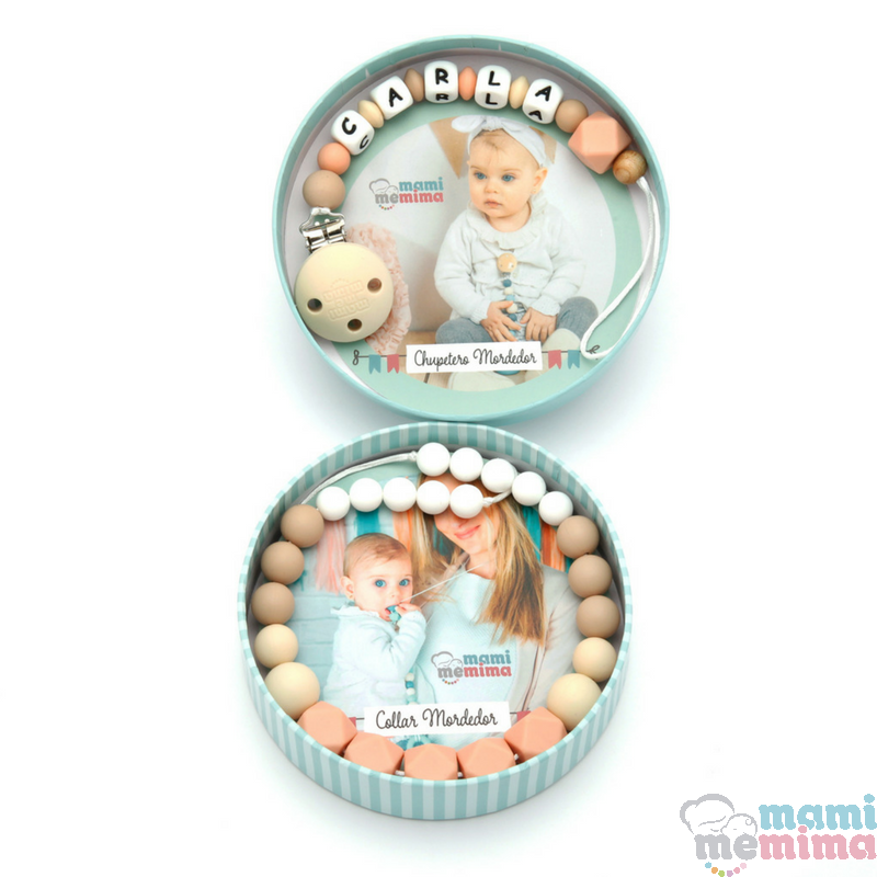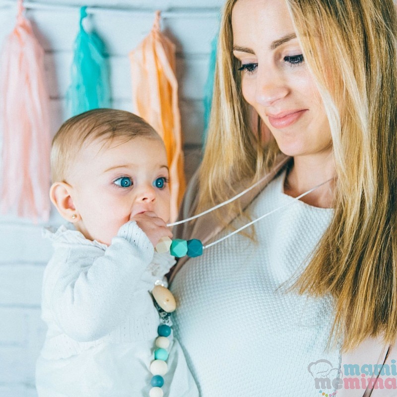Mamá&Bebé a conjunto con collar mordedor y chupetero personalizado a juego.