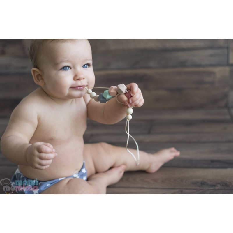 Sujetachupetes 100% Mordisqueable de Silicona alimentaria antibacteriana libre de BPA. Personalizado con el nombre del bebé para que sea una pieza única y original. Ideal para aliviar los molestos dolores de dentición y que no pierdan su chupete. Certificado. Cumple con la normativa Europea de Seguridad EN12586:2007 Fabricado en España.