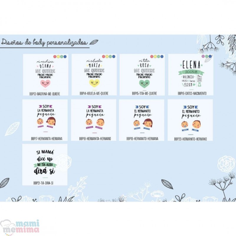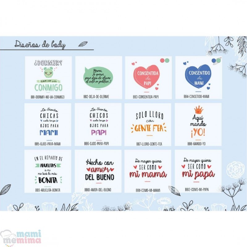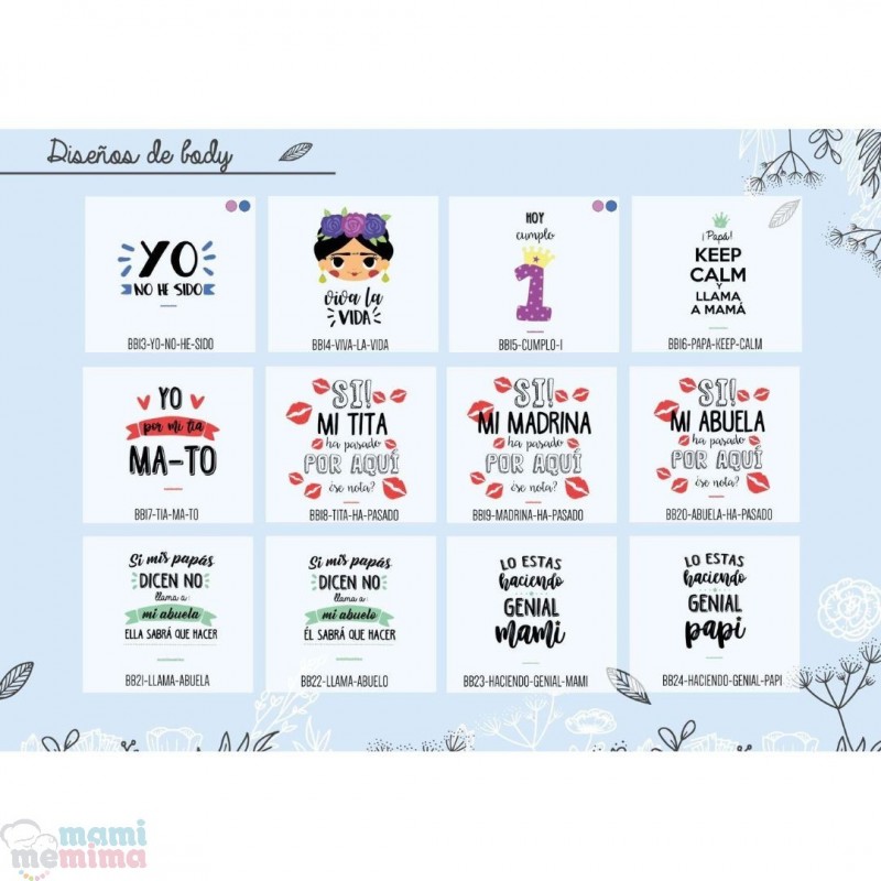 Body Personalizado con diseño original mami me mima Design "Si mis papás dicen no, llama a mi abuela, ella sabrá que hacer" Body 100% fabricado en algodón ecológico y orgánico para cuidar la delicada piel de tu bebé al mismo tiempo que lo vistes de una forma divertida y original. Tinta con certificado Öeko-Tex respetuosa con el medioambiente y delicada...