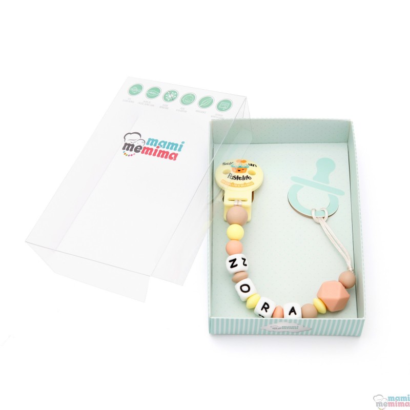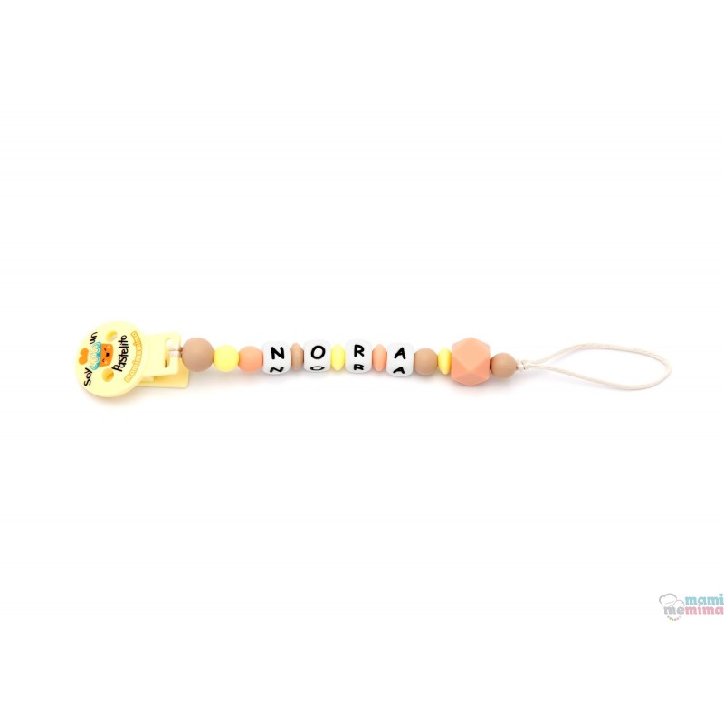 Chupetero Mordeur Personnalisé Silicone "je suis un Cupcake" Pêche Jaune