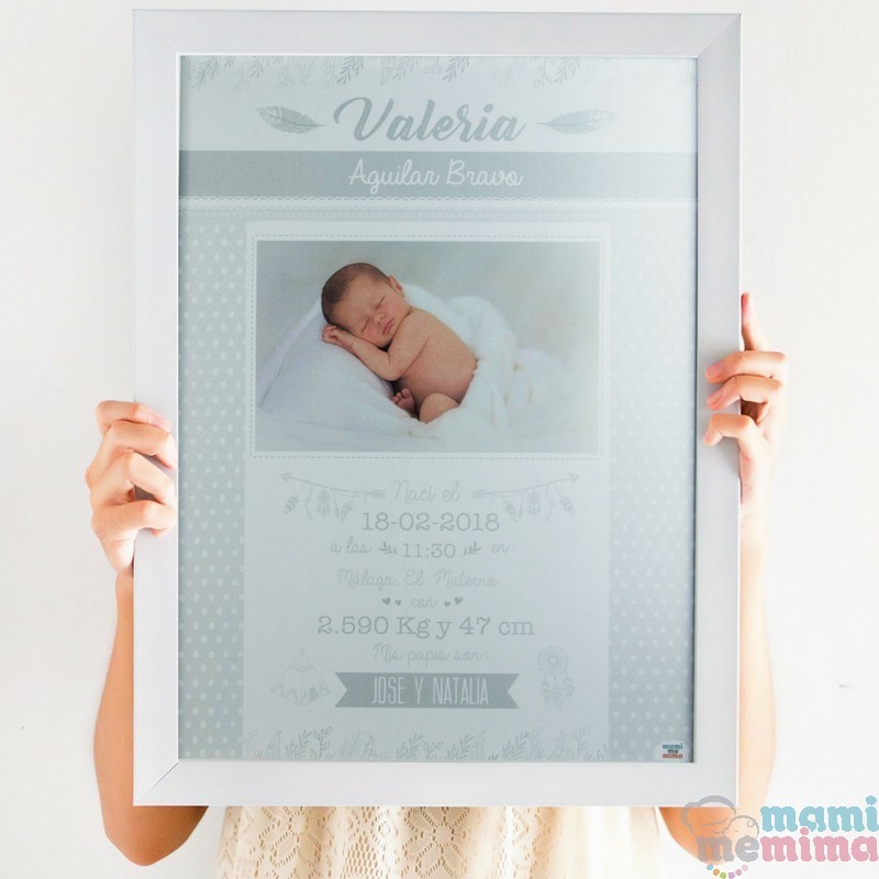 Feuille d'anniversaire de photo en orientation paysage avec toutes les données du bébé et une photo pour se souvenir à jamais de votre journée spéciale