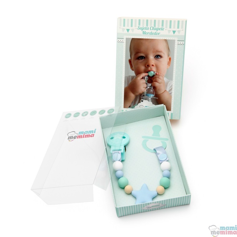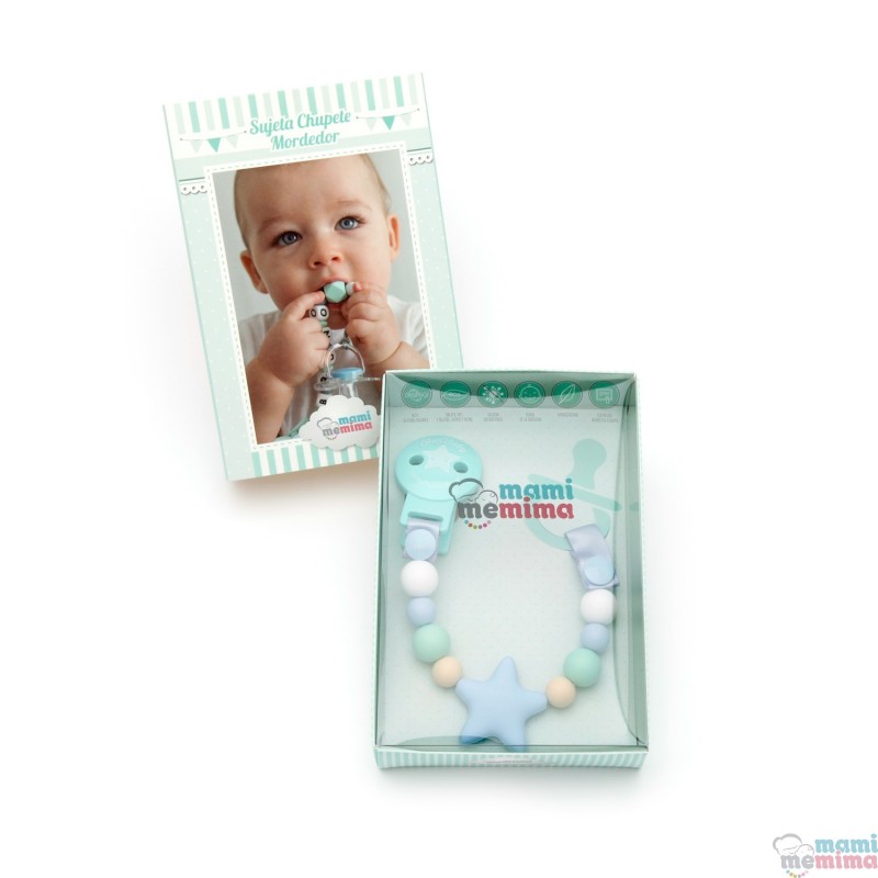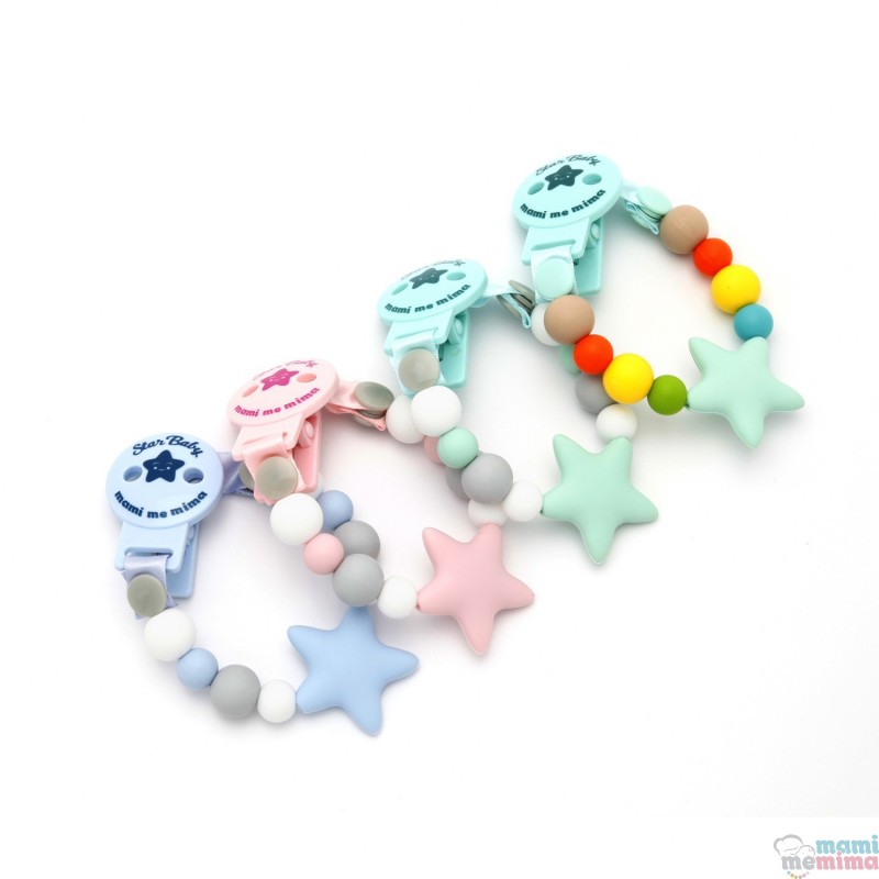 Catenella Portaciuccio Dentarello Silicone Star Blue&Mint