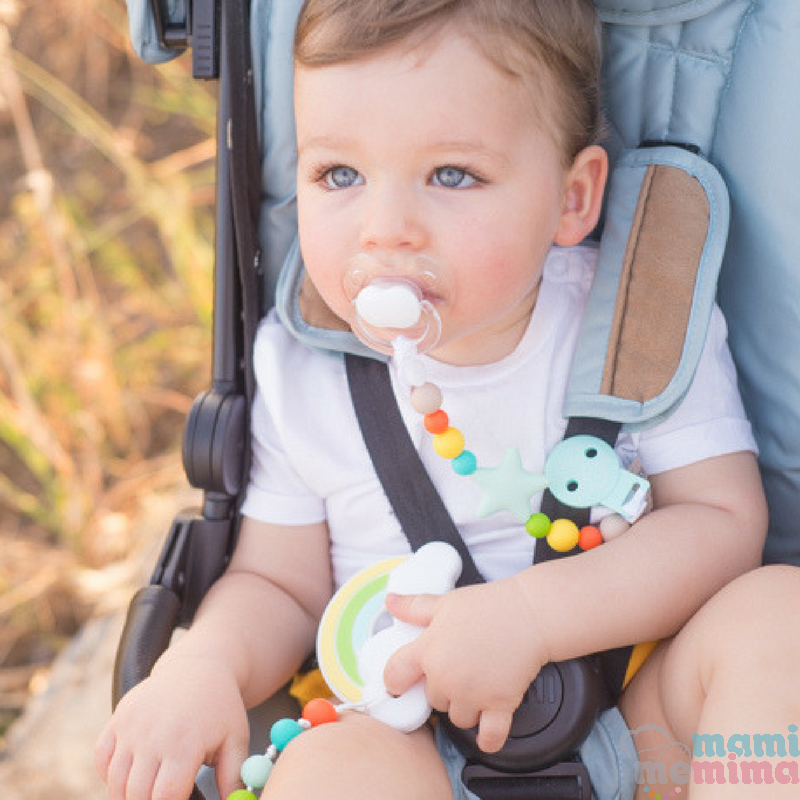 Portaciuccio 100% mordibile di silicone alimentare antibatterico BPA-free.