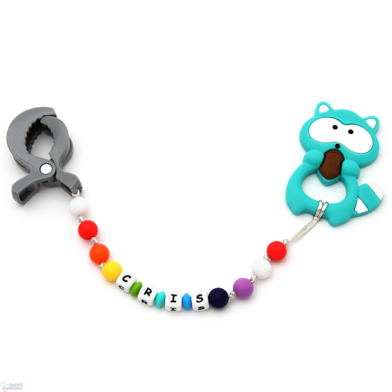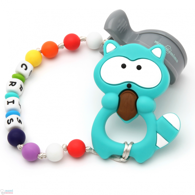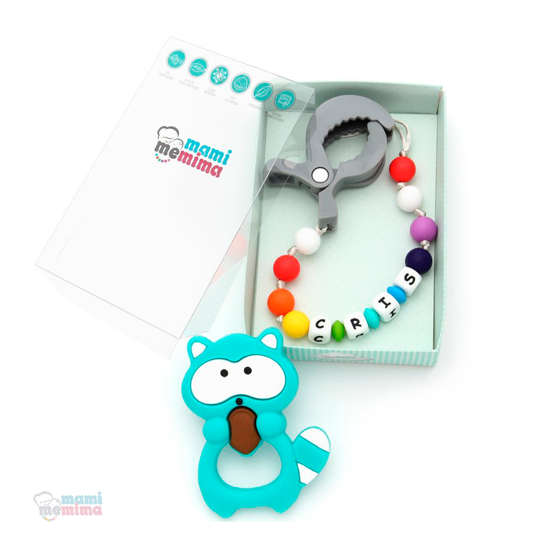 Pack Giocattolo Dentizione Anello Al Carrello Rosa E Menta, Personalizzato Con Una Dentizione Del Bambino Procione