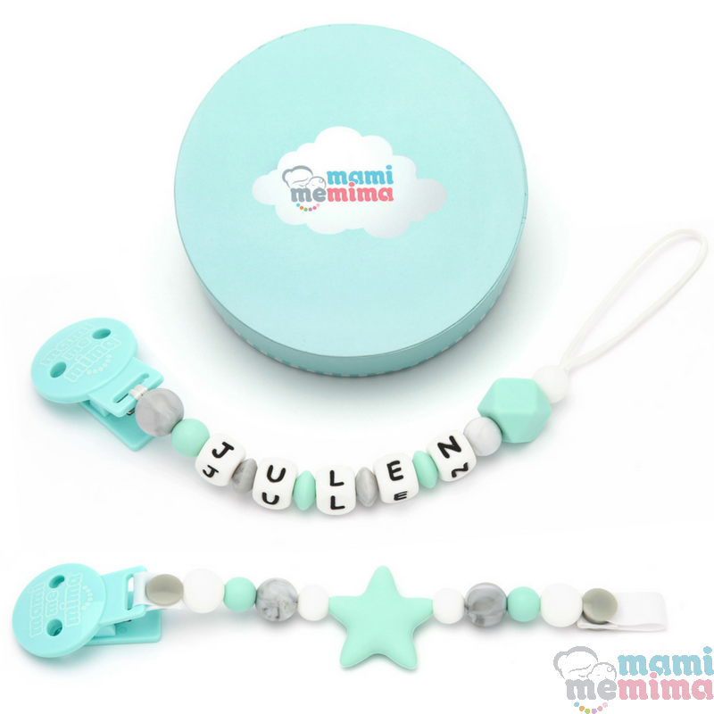 Pacote de dois tira de chucha Sweet Mint, um com nome